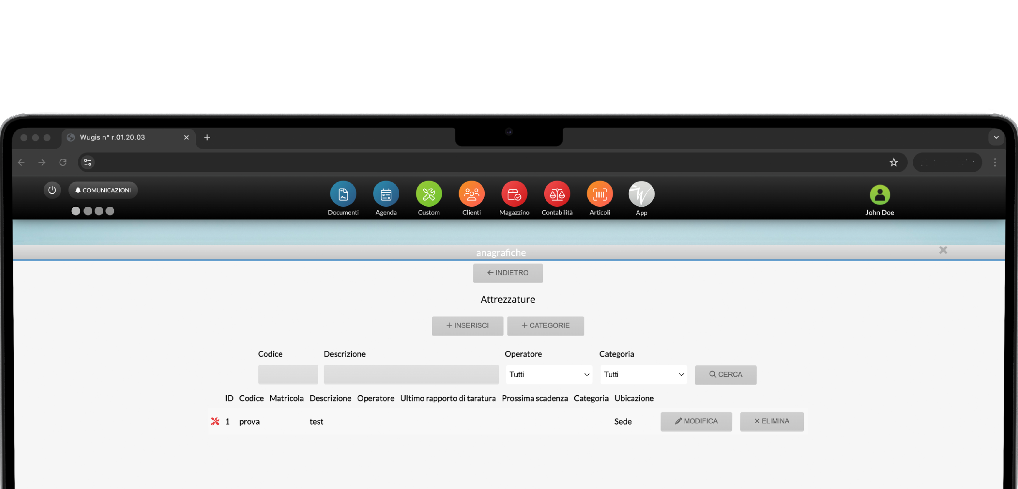 Ogni attrezzatura ha la sua matricola univoca per un controllo completo di stato, posizione e storico manutenzioni.